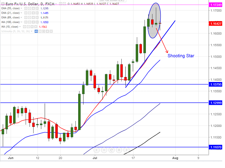 - The pair has formed shooting star in the daily chart and potential reversal Zone is around 1.1740 (Aug 2015 high). Any break above will take the pair till 1.1745/1.18000.