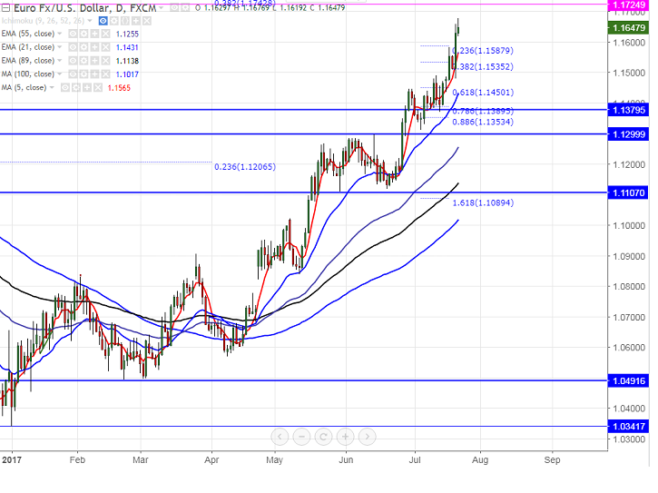 - The near term resistance is around 1.17140 and break above will take the pair till 1.17420 (38.2 % retracement of 1.7420 (38.2% fibo)/1.1800.