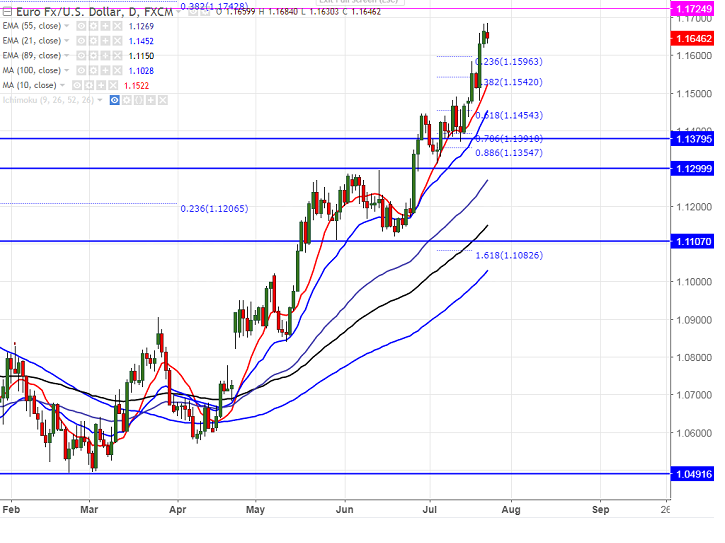 - The near term resistance is around 1.17140 and break above will take the pair till 1.17420 (38.2 % retracement of 1.7420 (38.2% fibo)/1.1800.