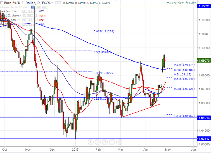 - The near term support is around 1.08400- 1.08500 (200- day MA, low formed yesterday) and any violation below targets 1.08200 (Apr 24th 2017 low)/1.07850.