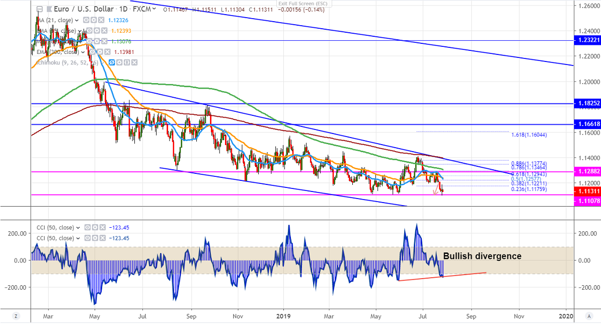 On the higher side, near term resistance is around 1.11752 (23.6% fib) and any break above will take the pair to next level till 1.1200/1.12450 (21- day MA)/1.12860 (Jul 11th, 2018 high).