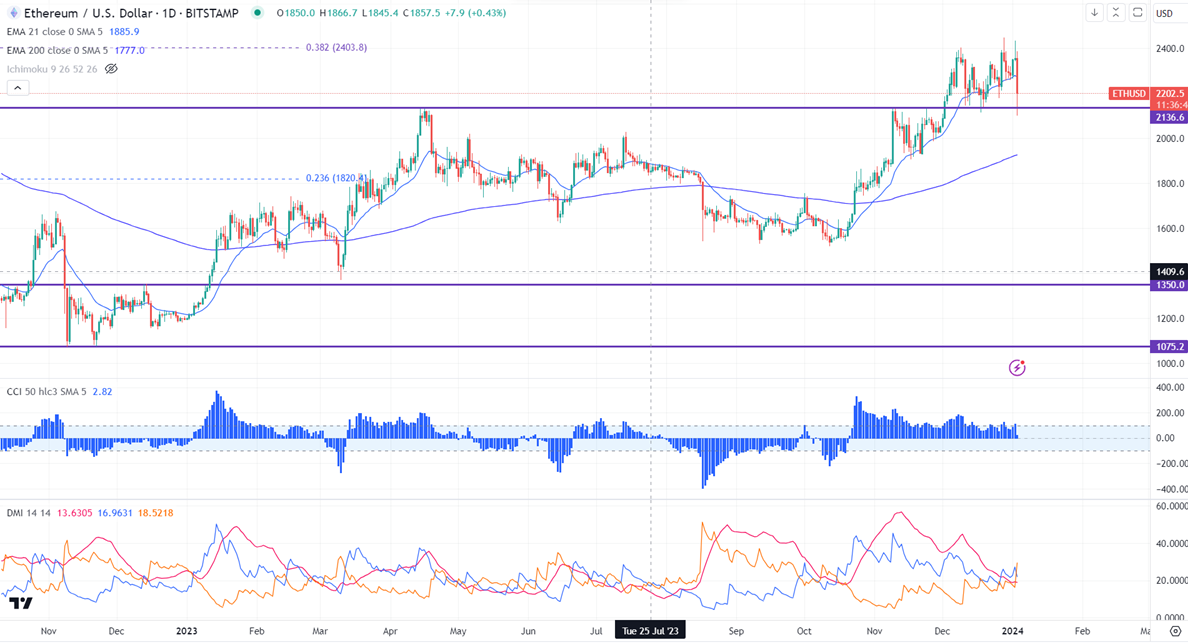 The bullish invalidation can happen if the pair closes below $1870. On the lower side, the near-term support is $2080. Any break below targets $1870. Significant downtrend if it breaks $1500.