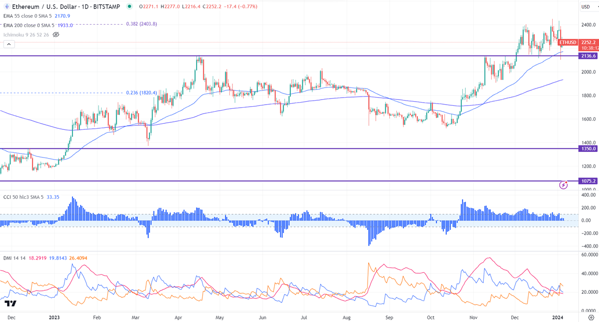 The bullish invalidation can happen if the pair closes below $1920. On the lower side, the near-term support is $2100. Any break below targets $1935/$1870. Significant downtrend if it breaks $1500.