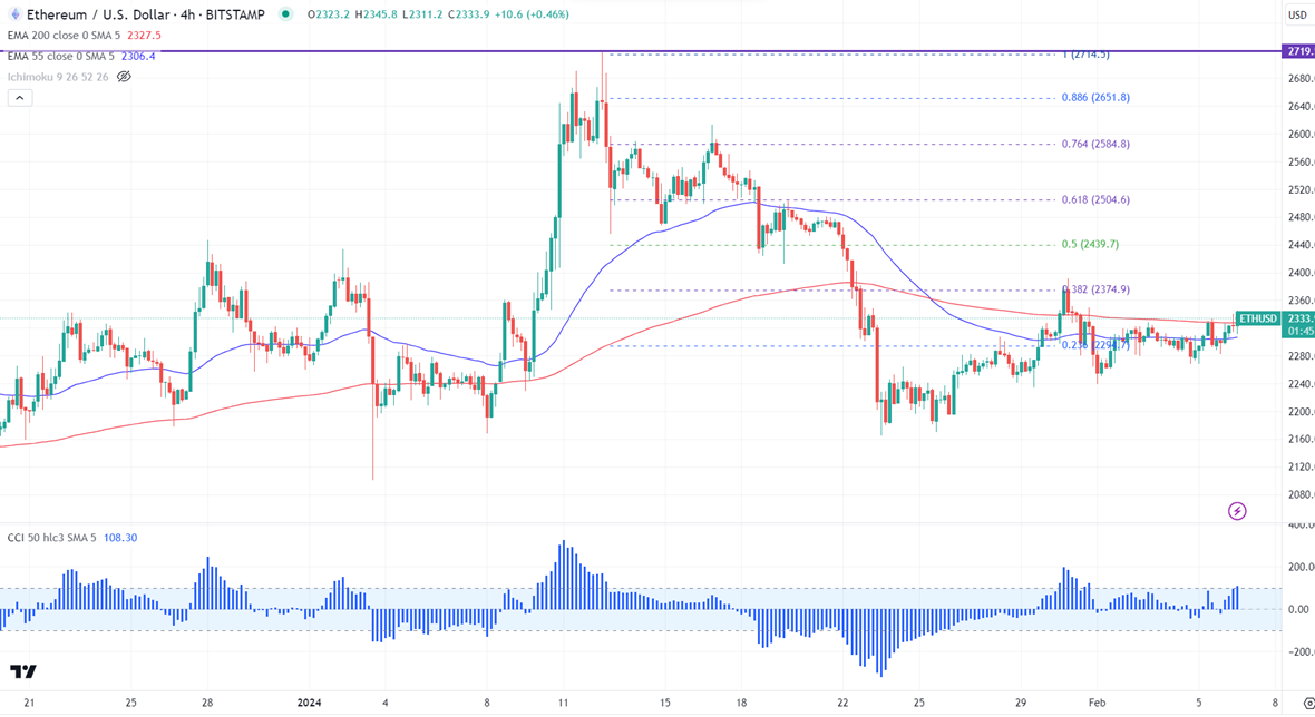 ETHUSD outperforms crypto markets and jumped more than 1.50%. It hit a high of $2345 at the time of writing and is currently trading around $2322.