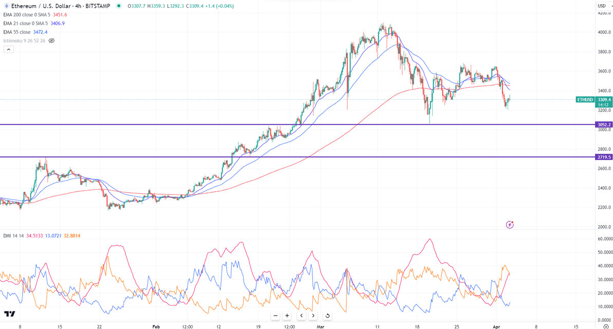 ETHUSD trades weak following footsteps of Bitcoin. It hit a low of $3204 yesterday and is currently trading around $3316.