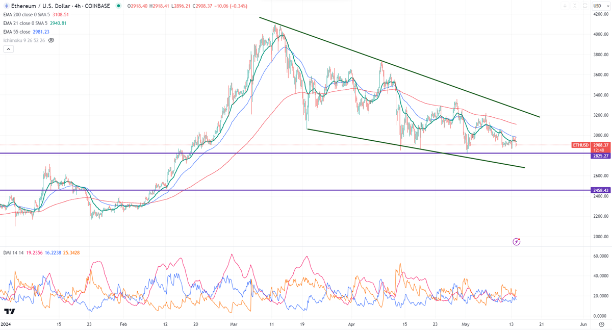 ETHUSD trades weak as ETH ETF pessimism. It hit a low of $2880 at the time of writing and is currently trading around $2907.