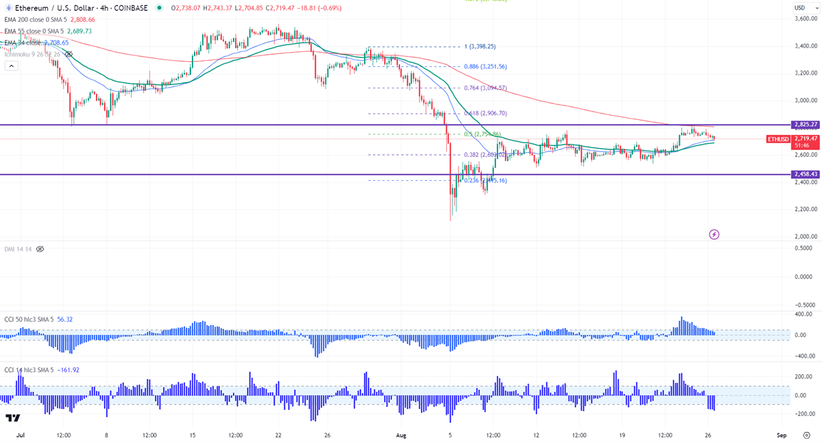 ETHUSD declined slightly despite rate cut hopes. It hit a high of $2793 at the time of writing and is currently trading at around $2704.