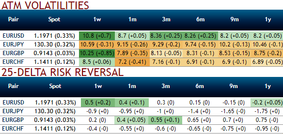 Contemplating all these factors, OTC markets have factored-in, please be noted that the implied vols, as well as risk reversals of euro crosses, have been considerably spiking higher on ECB’s monetary policy decision. Positive RRs in 1-3m tenors and positively skewed IVs would imply the euro’s strength. Vol pts Positive smile theta participation in Euro bull-trend.