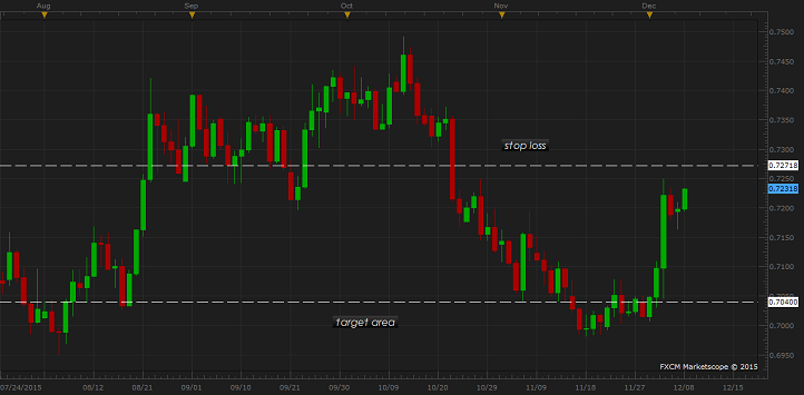 Sell Euro against Pound at current rate 0.723, with stop loss around 0.728 area and target around 0.704.