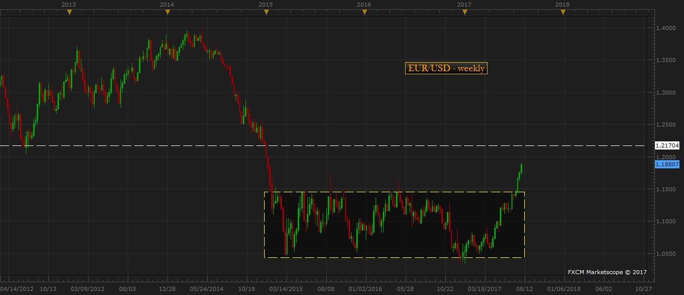 “The euro is currently trading at 1.145 against the dollar, which is the highest level for the single currency since April 2016. While the initial bull side push came from the weakness of the dollar back in April this year, which got fuelled by French election win by Emmanuel Macron, the single currency is currently riding on the hawkish speculation with little influence from the dollar’s strength.