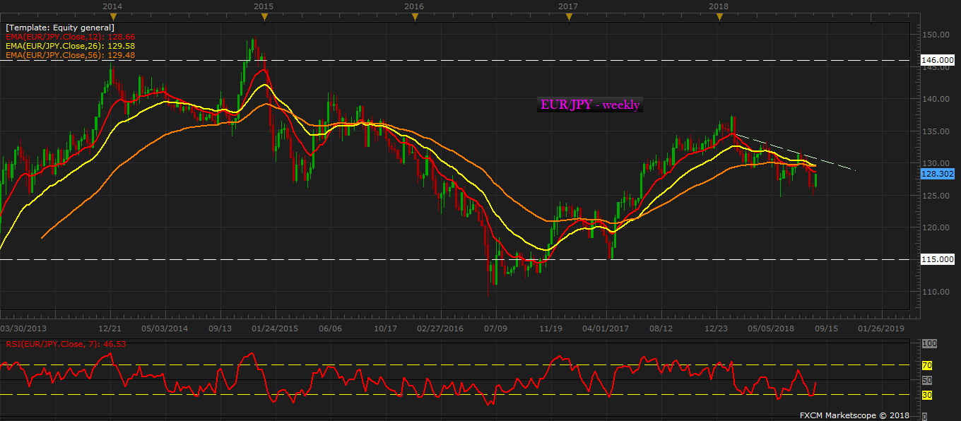 With both European Central Bank (ECB) and Bank of Japan (BoJ) continue their easing policy, the exchange rate is trapped in Bull/Bear fight. While the European Central Bank’s decision to wind up asset purchases by the end of the year is energizing the euro bulls; the Japanese yen is benefiting from risk aversion stemming from the impact of U.S. policies such as the trade disputes, higher interest rates, and others.