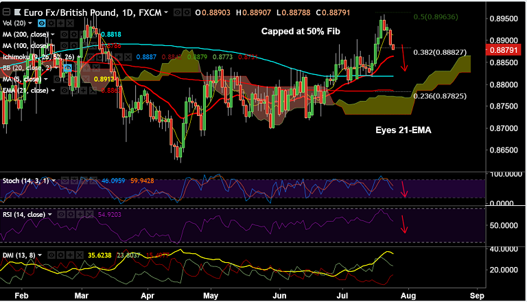 - EUR/GPB extends retreat from 4-month highs at 0.8957 hit on July 20th trade, slips for 4th straight session.