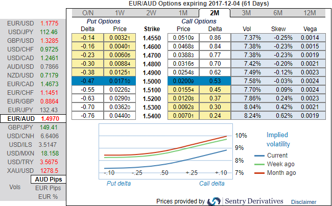 Thus, contemplating all the above underlying factors of EURAUD, we like being short vol in short run, selling that premium conditionally on a pay-off benefiting from a lower spot.
