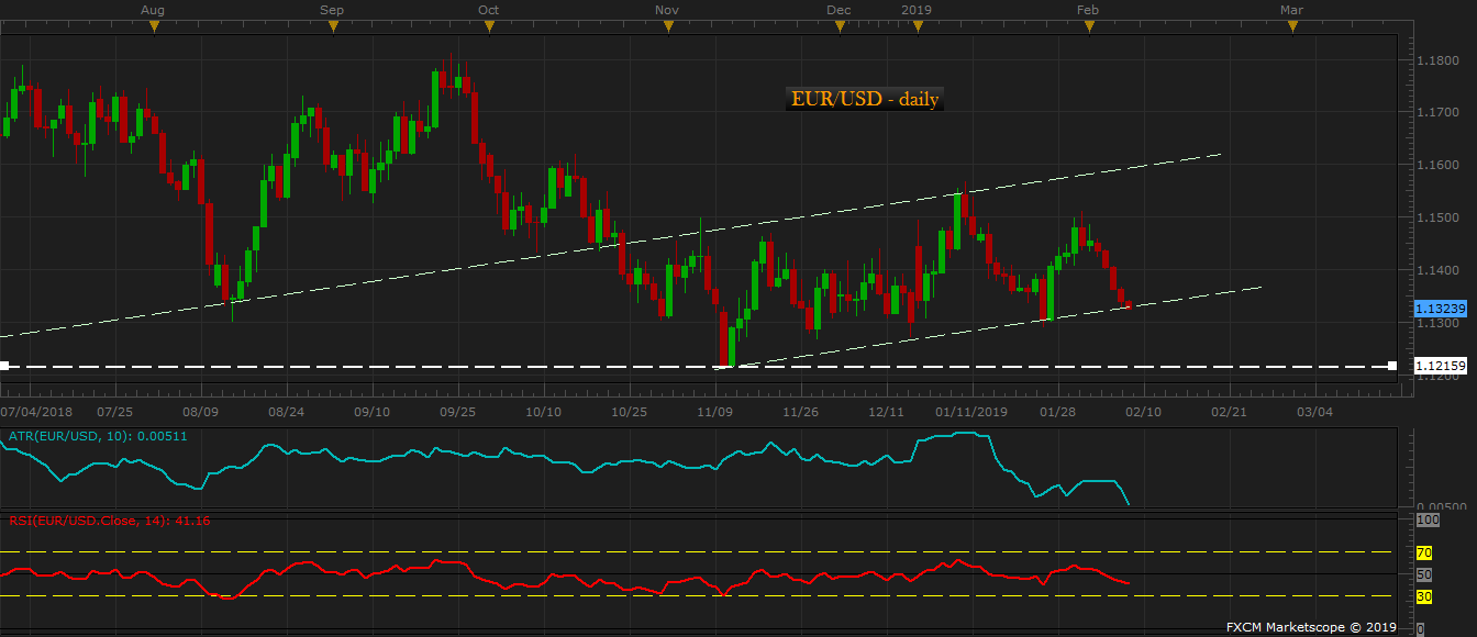 The single currency is down for the fifth consecutive day and currently trading at 1.1325 against the USD.