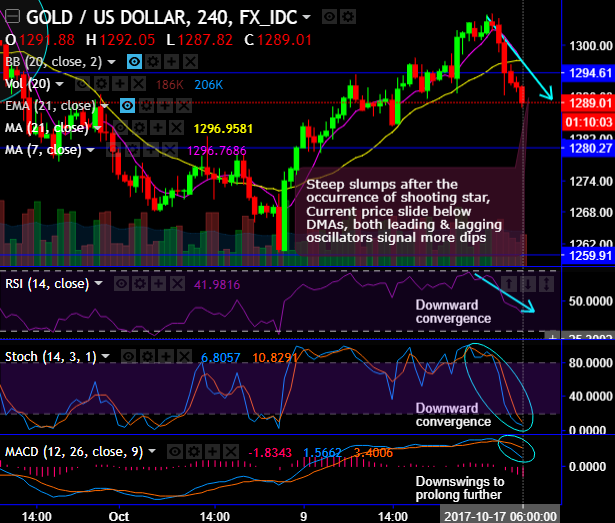 Historically, hanging man and shooting star pattern candles have occurred at 1321.49 and 1308.76 levels respectively, that is where the stiff resistance at the same level was observed (refer monthly chart to see the strong supply zone). In July and September 2016, you could observe the similar resistance levels at this juncture. And for now, in September 2017, we’ve seen steep slumps after peaking to the same level.