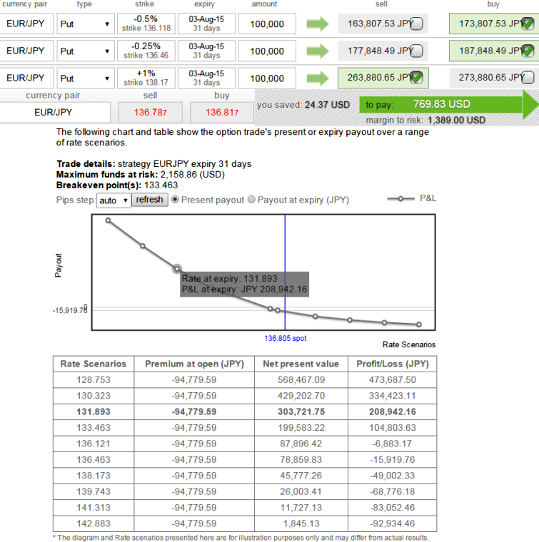 As we expect the underlying currency (EURJPY) to make a large move on the downside in medium term.