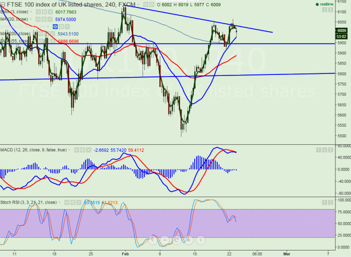 - FTSE has retreated 5977 after making a high of 6066. It is currently trading around 6015.