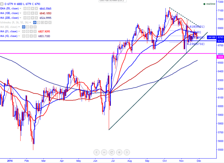 FxWirePro: FTSE100 faces strong trend line support at 6720, good to buy on dips