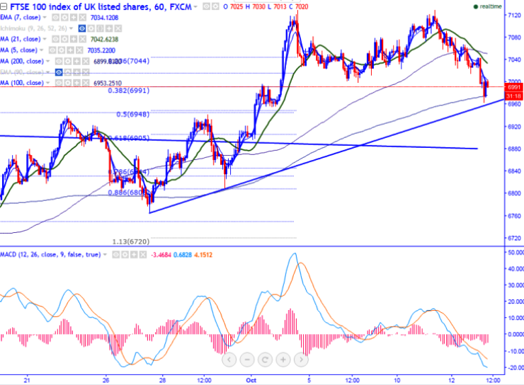 - FTSE regained after making a low of 6962. Any minor weakness can be seen only below 6950.