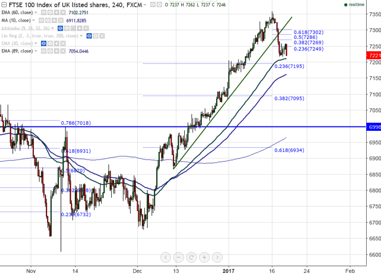 - FTSE100 has formed a temporary top around 7359 on Jan 16th 2017 and declined till 7211 yesterday.