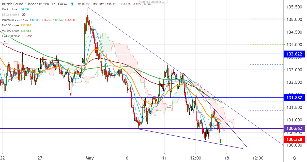 On the higher side, near term resistance is around 5858 (55-4H EMA) and violation beyond will take the index till 5895/5946/. Bullish Persistence only past 6025. The immediate support is around 5800, indicative violation below targets 5747/5700. Bearish continuation only if it breaks below 7650.