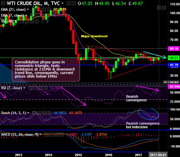 Capitalizing on puzzling rallies of WTI crude prices major downtrend, one can load up shorts in ITM puts as shown in the above diagram of credit put spread but preferably use this strategy with a narrowed strikes and tenors.