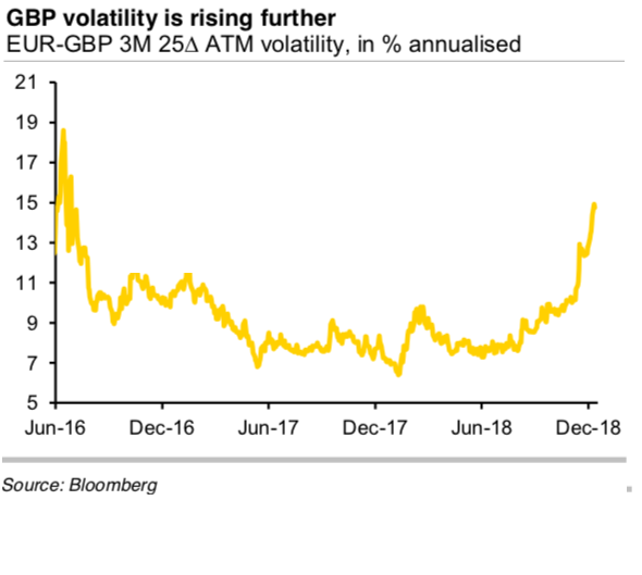 However, who can still say with any certainty that that still is the deadline? If the government sticks to its strategy of constantly postponing important decisions the uncertainty could last for longer than that (i.e. the bump in the volatility curve would move further out). One thing is clear: GBP investors continue to face a difficult time. Courtesy: commerzbank