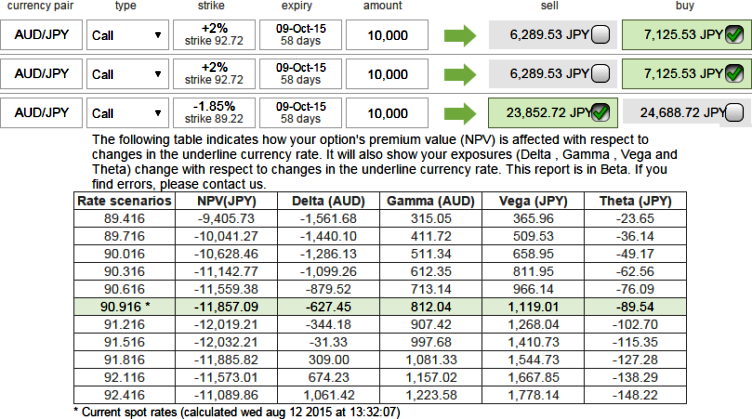 Maximum loss for the call back spread is limited and is taken when exchange rate of AUDJPY at expiration is at the strike price of the long calls purchased (i.e. 92.72 levels). At this price, both the long calls expire worthless while the short call expires in the money.