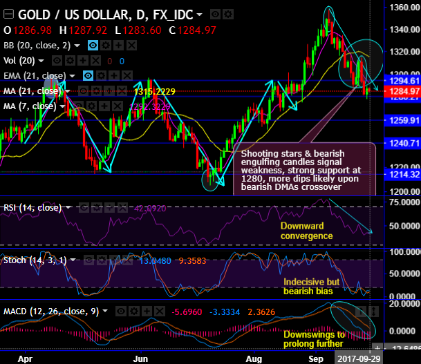 Bearish engulfing has also occurred at 1293.35 levels to slide below 7DMAs, that’s where the bears have managed to breach below the strong support levels (refer daily chart for the stiff supply zone at the same juncture in the past).
