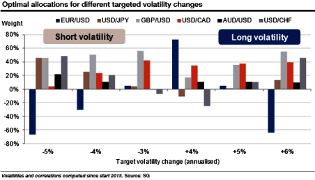 Targeting either a large rise or fall involves massively selling EUR/USD volatility and buying the five others.