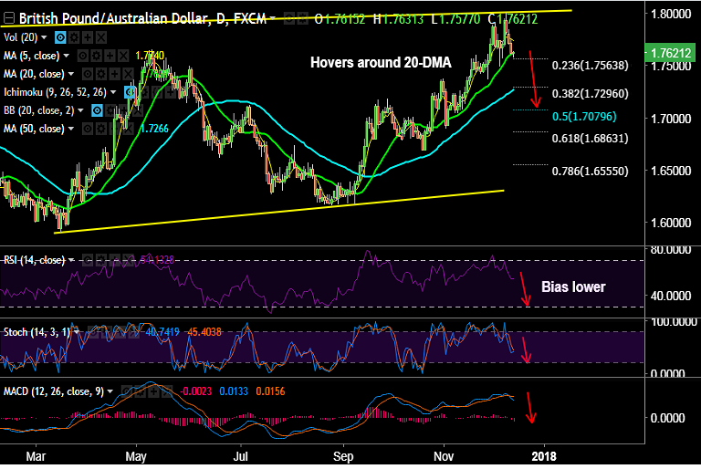 Resistance levels - 1.7620 (20-DMA), 1.77, 1.7739 (5-DMA)