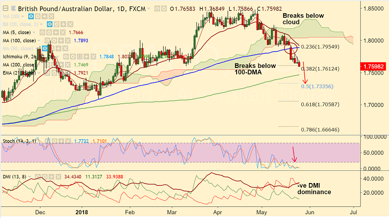 - Trend indicators also support downside, next major bear target lies at 200-DMA at 1.7469.