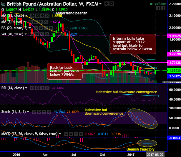 Although GBPAUD rallies have gone above 7WMAs on weekly plotting but remained well below 21WMA, for now, maximum upside potential is seen only upto stiff resistance of 1.6550 and 1.7049 levels.