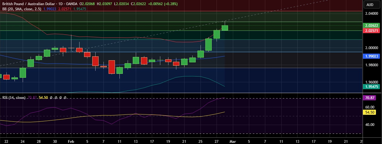 • GBP/AUD pair strengthened as fears over imminent U.S. tariffs and the potential for a global trade war weighed heavily on export-sensitive currencies like the Australian dollar.