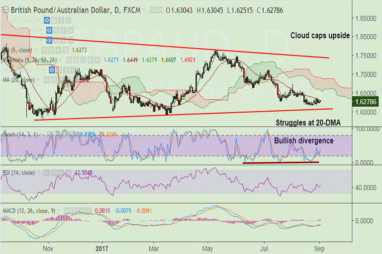 - GBP/AUD capped below 20-DMA at 1.6312, we see gains only on break above.