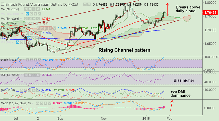Recommendation: Good to go long on dips around 1.76/1.7620, SL: 1.75, TP: 1.78/ 1.79/ 1.80