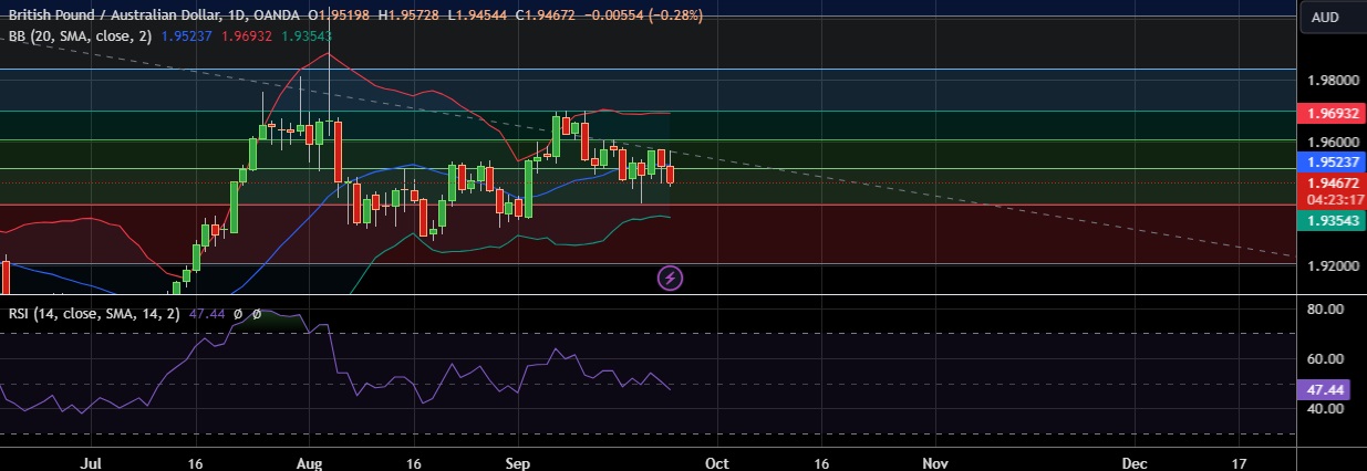 • trong support is seen at 1.9395 (23.6% fib) and break below could take the pair towards 1.9356 (Lower BB).