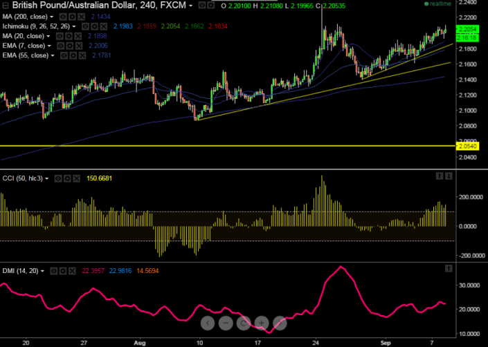 - GBP/AUD has broken minor resistance 2.1910 and jumped till 2.210. It is currently trading at 2.2065.