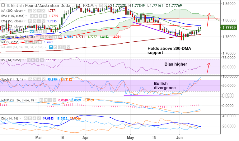 - GBP/AUD failed to extend weakness below 200-DMA, retraces higher to currently trade at 1.7792 levels.