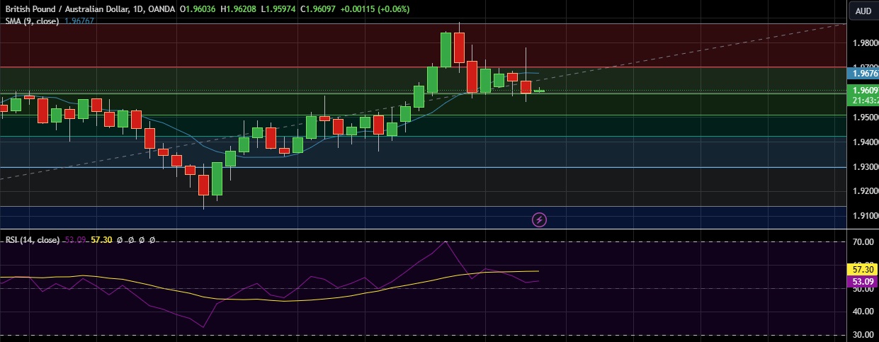 • In an up-and-down session, the pair hit low at 1.9566 in early trading then gained towards 1.9620.