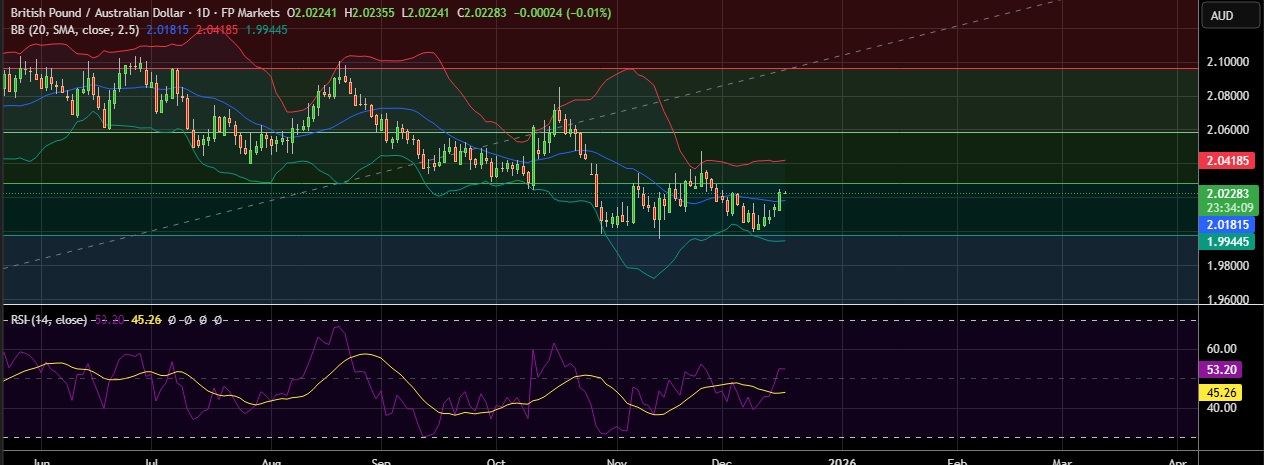• Immediate resistance is located at 2.0278(50%fib), any close above will push the pair towards 2.0414(Higher BB).