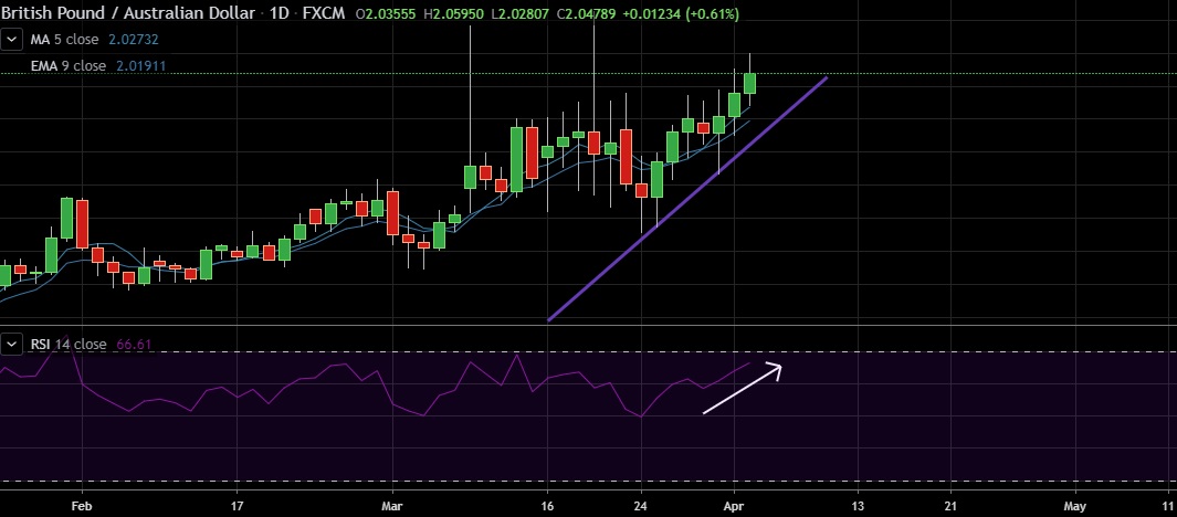 • At GMT 17:40, the pair was trading 0.65% higher at 2.0488, slightly lower from session high at 2.0604.