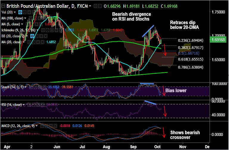 - Close above 5-DMA at 1.6934 could see minor upside, decisive break below 20-DMA will accentuate weakness.