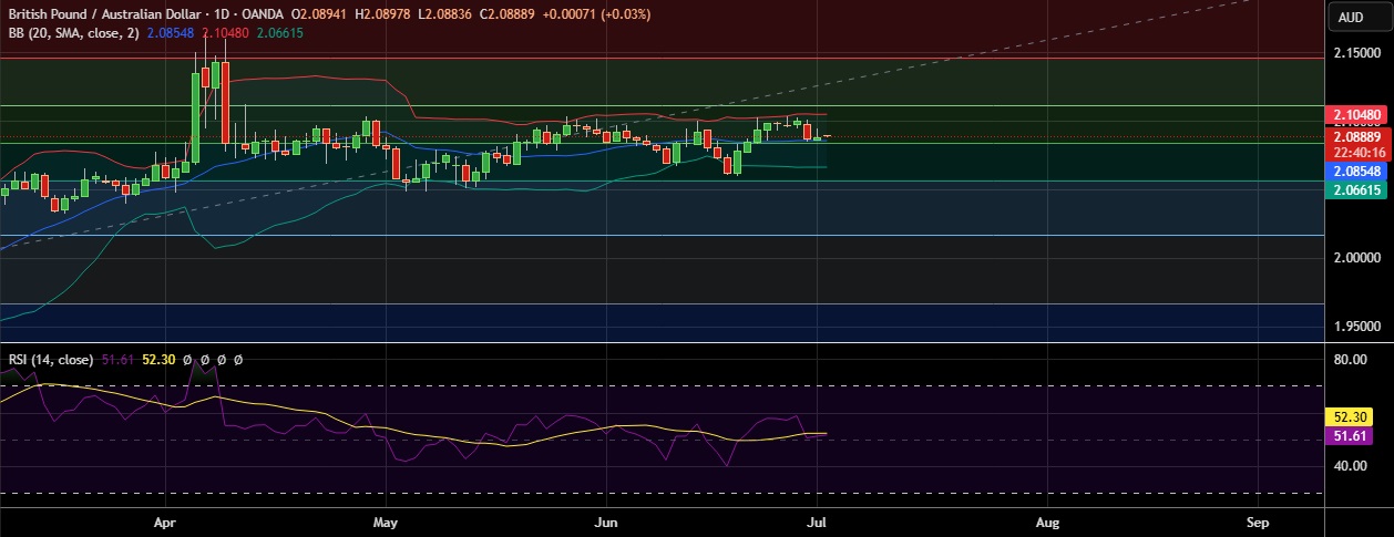 • Immediate resistance is located at 2.1047(Higher BB), any close above will push the pair towards 2.1114(38.2%fib)