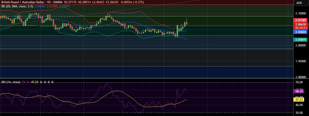 • Immediate resistance is located at 2.0923(38.2%fib), any close above will push the pair towards 2.1000(Psychological level).