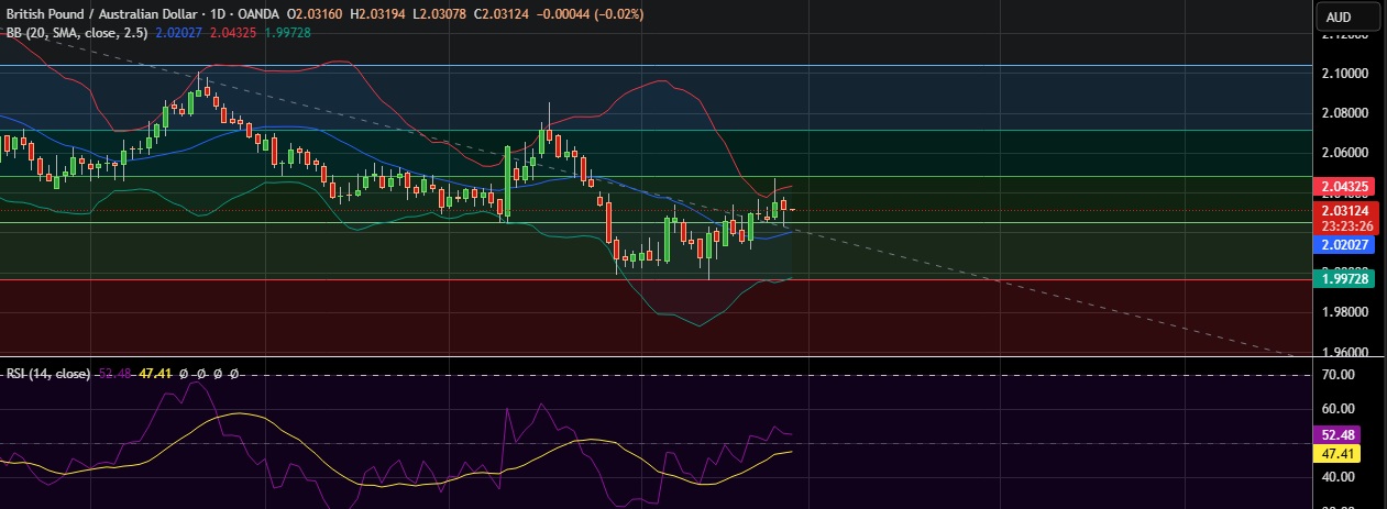 • Immediate resistance is located at 2.0450(Higher BB), any close above will push the pair towards 2.0484(50%fib).