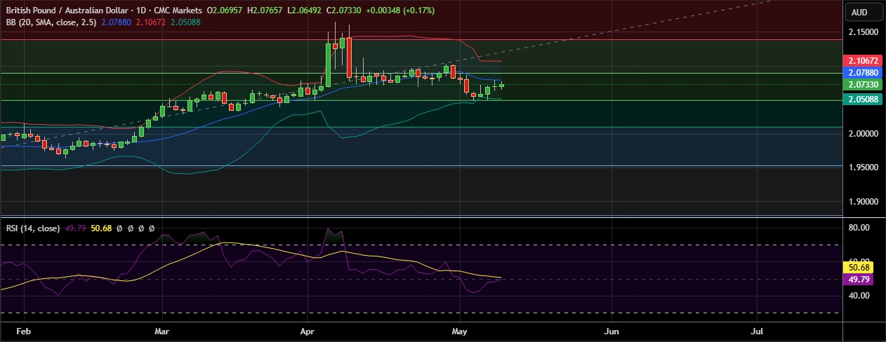 • Technical indicators for GBP/AUD show signs of consolidation, with momentum lacking a clear direction.