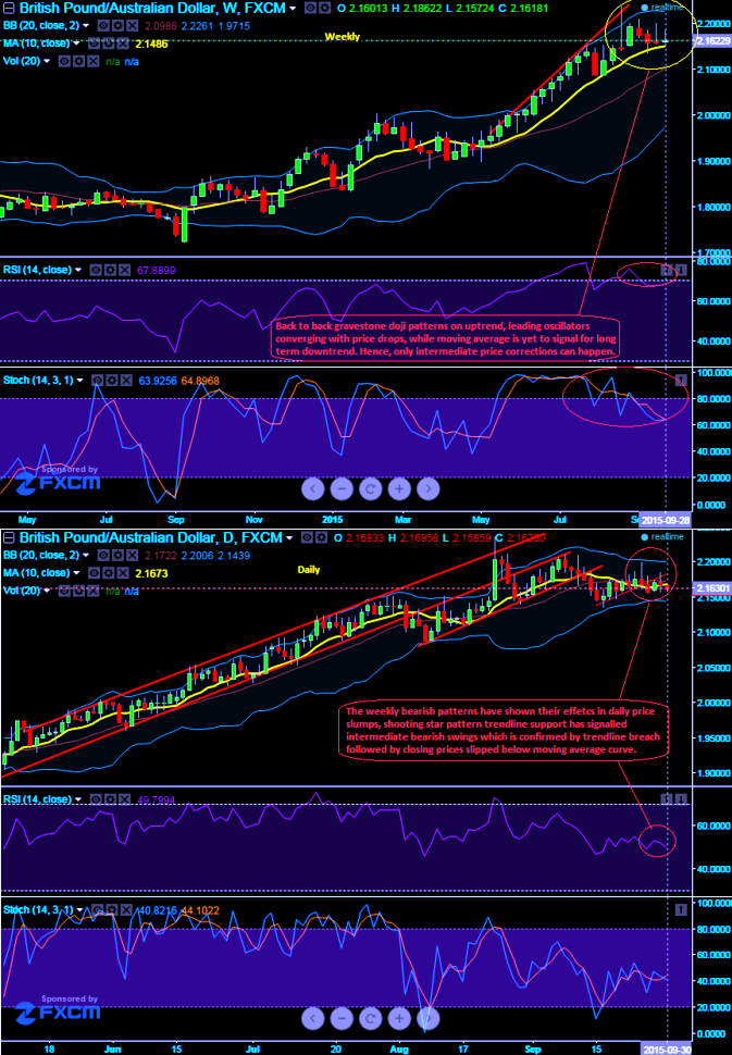 Moving onto daily charts, here we again found an intimacy in the trend that suggested by weekly charts as shooting star here again on the trendline support at around 2.1685 levels has factored in daily prices. Current spot FX is ticking at 2.1624 which means almost 60 pips drop from shooting star formation. Overall, we would foresee an intermediate price correction in this pair.