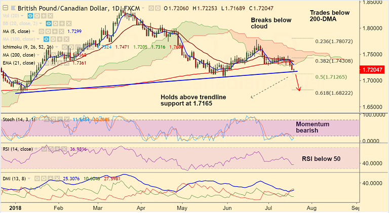 - GBP/CAD is extending weakness below 200-DMA and daily cloud, bias remains bearish.
