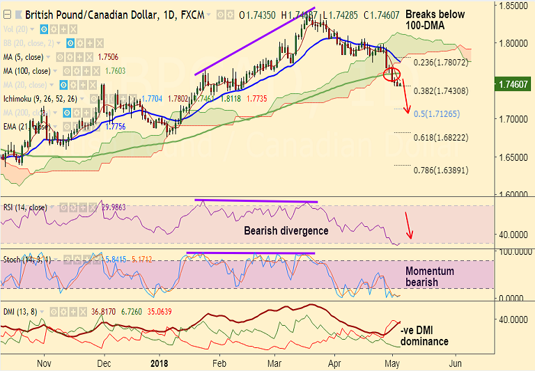 - GBP/CAD is extending consolidation below 100-DMA, bias lower.